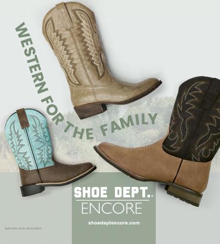 SHOE DEPT. ENCOREFrom little wranglers to seasoned pros, find western boots that fit every member of the family. Ready for work, play, or just the weekend. 👢✨ Selection varies by location. While supplies last. Some exclusions apply.